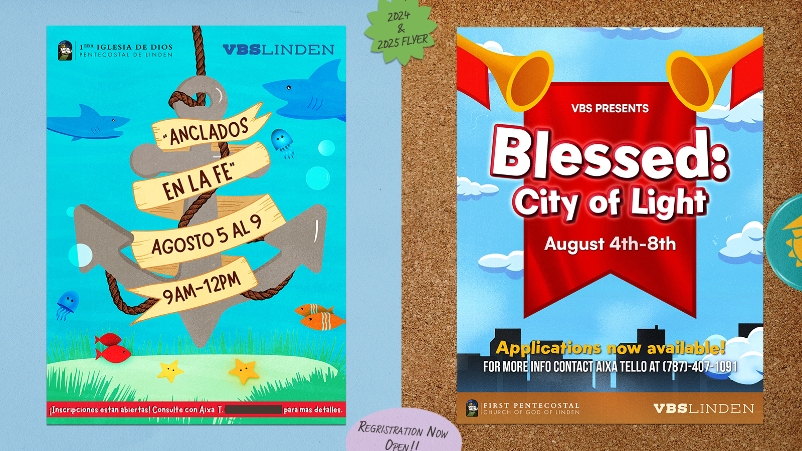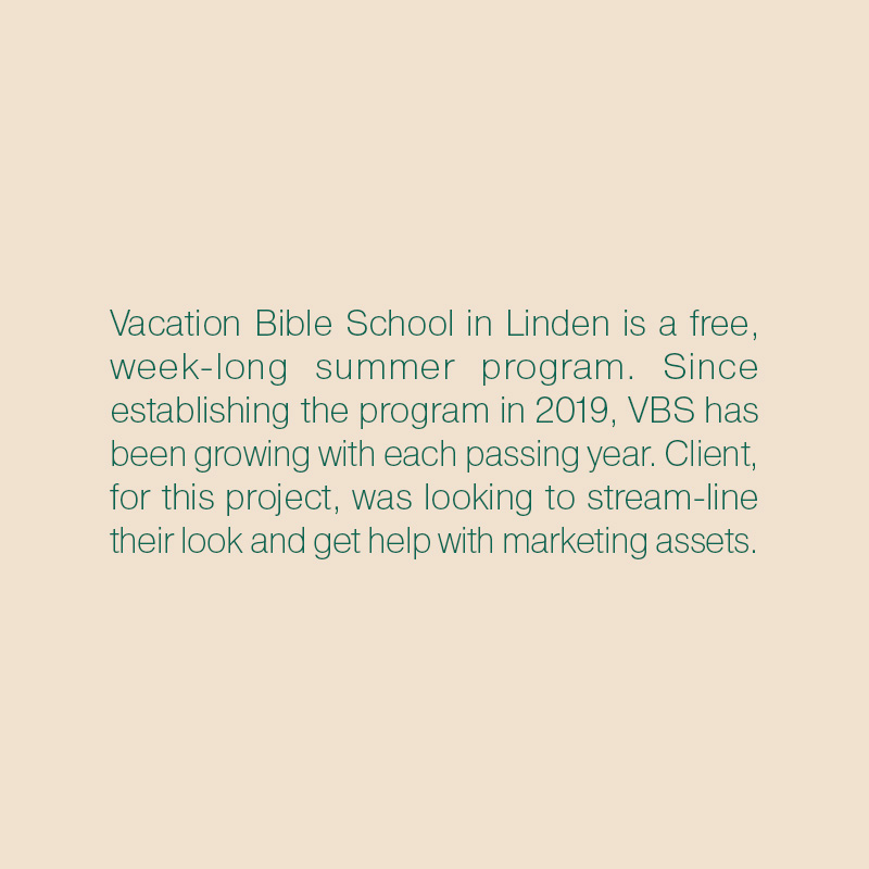 VBS is a week-long summer camp program that was in need of promotional work. When I started working with the church’s VBS deparment, I was asked to make an informational flyer to get parents to sign-up their children to the program. After making their promotional flyer, I was asked to create a logo and identity for their non-profit program. The latest project was redesigning their registration forms.